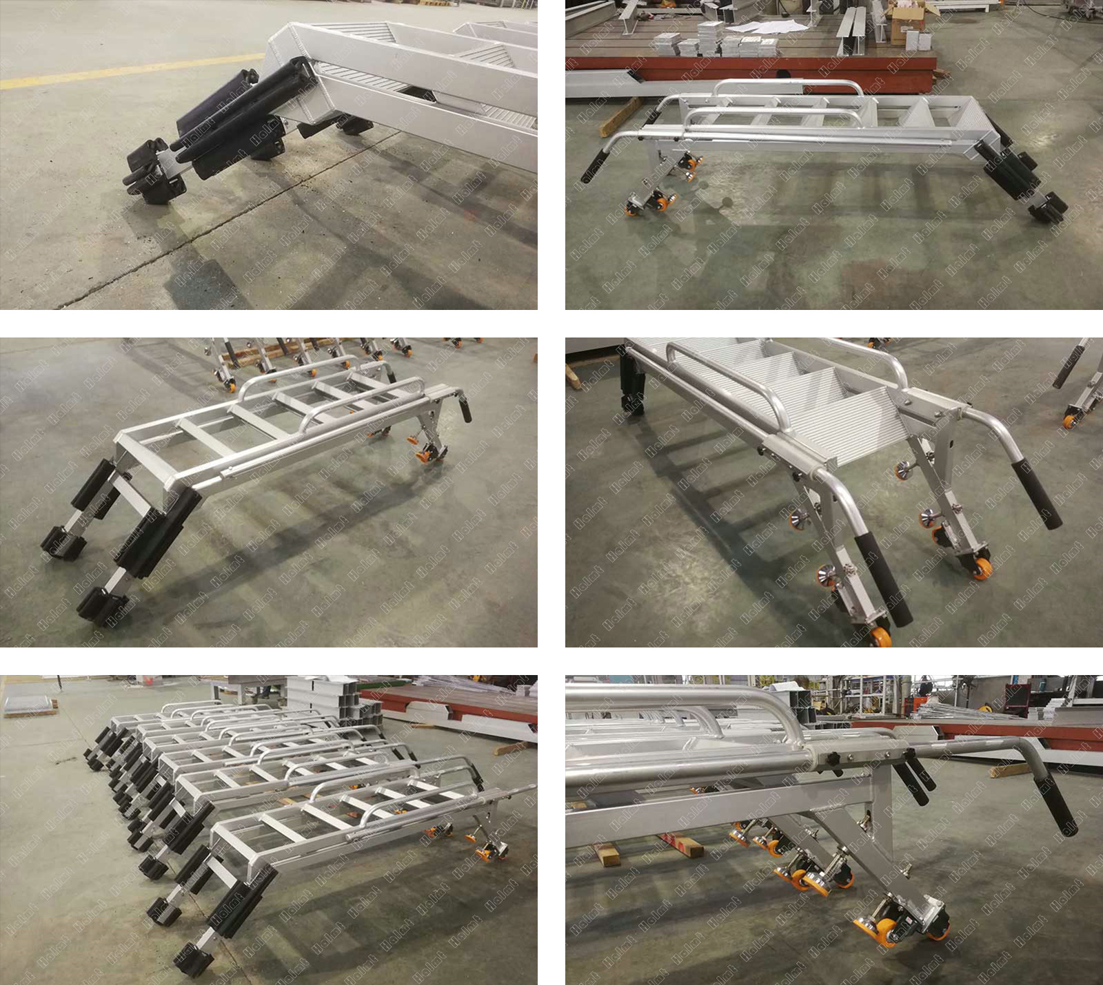 Ladder head: Designed with multiple rubber foot pads and casters...