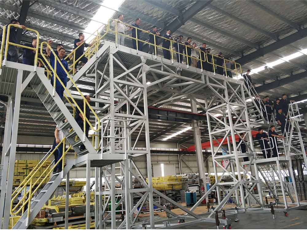 華鋁機(jī)械為中航工業(yè)某公司設(shè)計(jì)制作了1套飛機(jī)移動(dòng)檢修平臺(tái)。