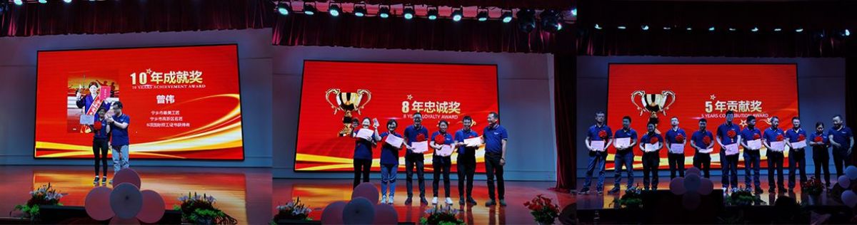 伴隨著歌舞、小品、游戲各個環(huán)節(jié)的歡慶,迎來了慶典的高潮部分--頒獎環(huán)節(jié)。分別對5年貢獻,8年忠誠,10年成就的老員工進行了頒獎儀式。